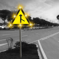 ELLUMIN车辆交汇预警系统,在匝道口与高速公路的交汇处设置监测警示装置。当匝道口路段有车辆进入监测区域时,系统激活LED标志闪烁,警示公路上的车辆前方匝道口即将有车辆交汇,司机选择减速或者提前变道,避免发生交通事故。