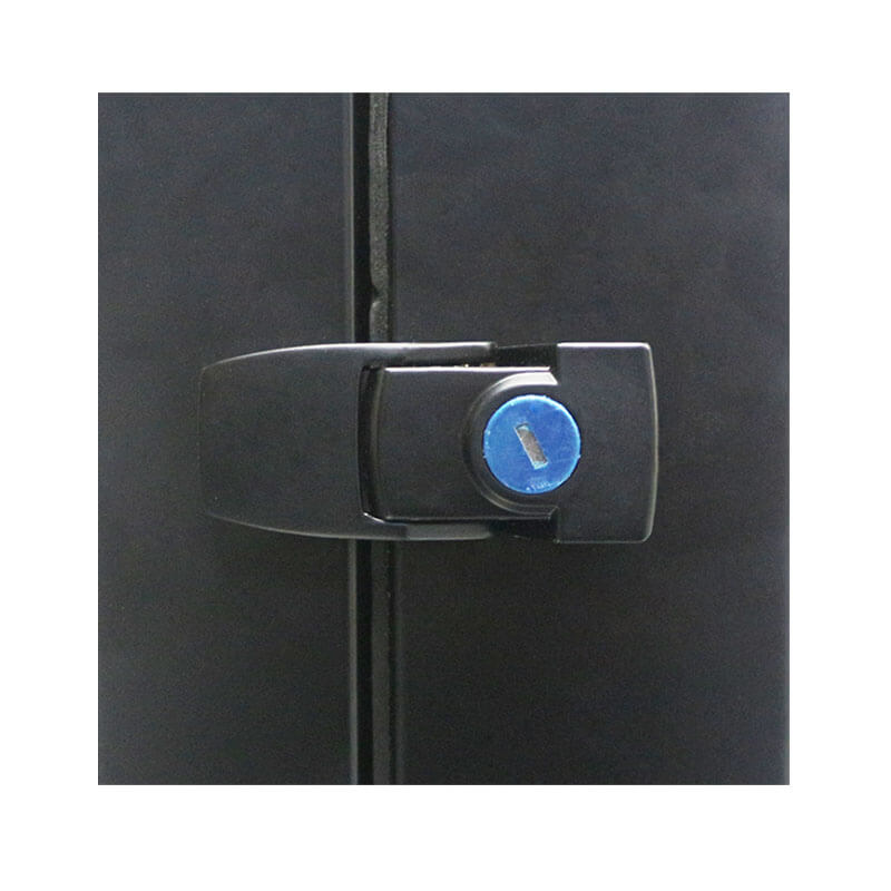 7.防盗设计:背板的开合一侧有两个卡扣固定,并各用一个防盗锁锁死