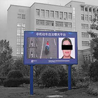 -“电子围栏”系统启动后,人脸识别摄像机启动,将违法者的违法行为过程和身份信息在路边的大屏幕上曝光。