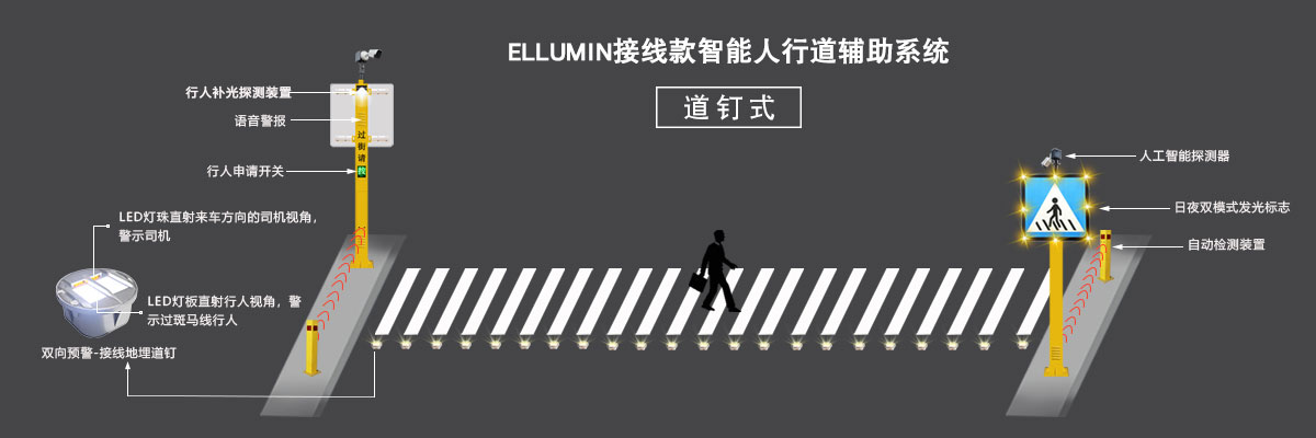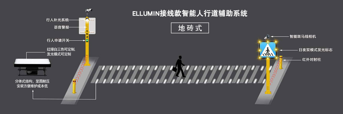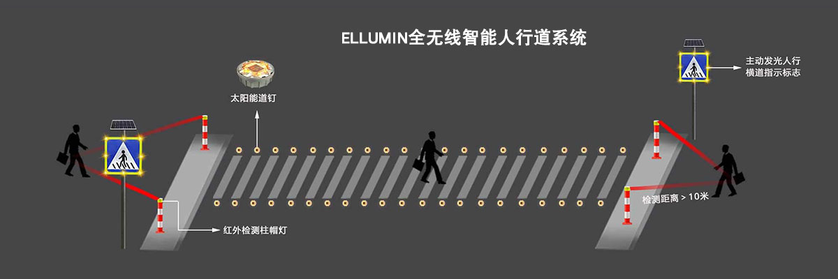 非灯控区域-接线款智能人行道系统全面监控正在通过或即将通过斑马线行人,以激活预警系统。