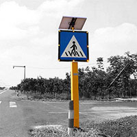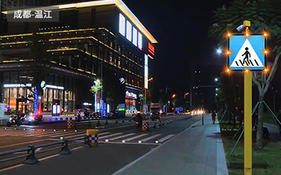 -预警系统启动后,朝向司机端的发光标志牌灯珠闪烁,预警司机前方斑马线即将有行人通过,请减速让行;发光标志牌灯板夜间自动常亮以达到更好的警示效果