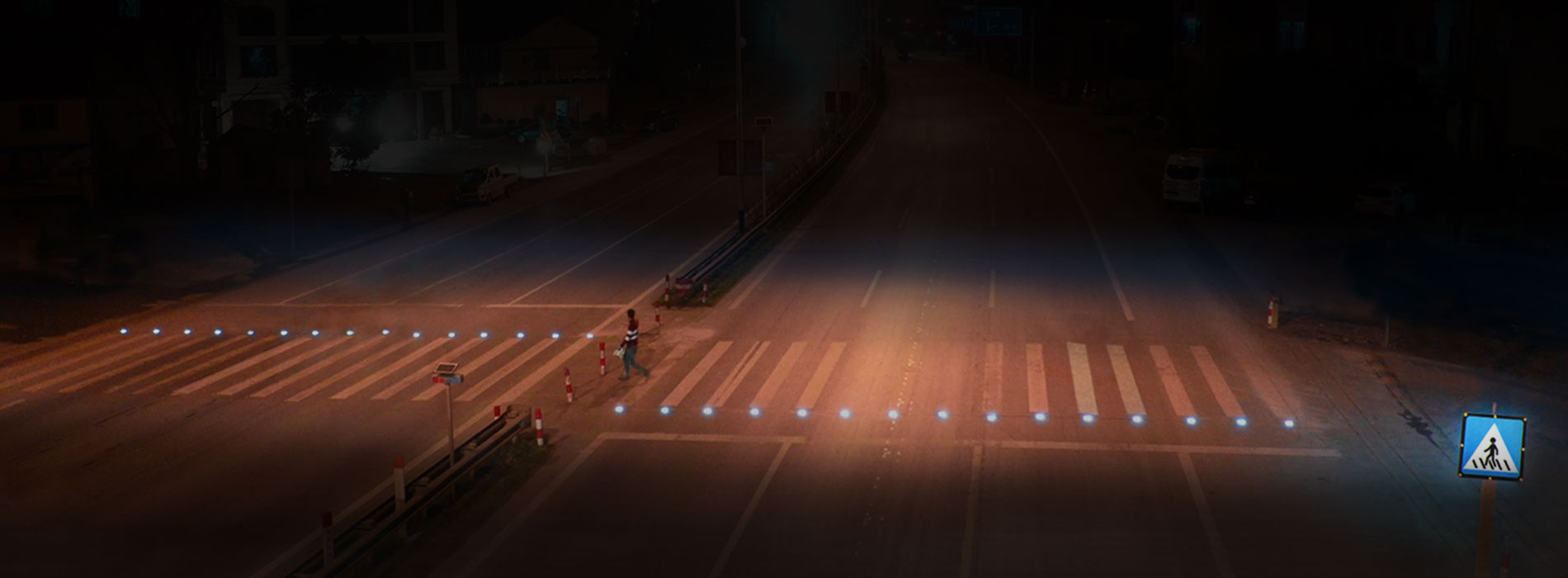 - 动态立体预警:闪烁的发光标志牌、道钉/发光地砖与语音警报从视觉,听觉有效预警行人、司机双端