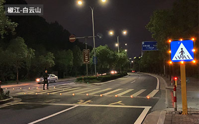 -预警系统启动后,朝向司机端的LED灯珠闪烁,预警司机前方斑马线即将有行人通过,请减速让行;同时,朝向行人端的LED灯板闪烁以警示行人,您正在或即将通过斑马线,请谨慎通行