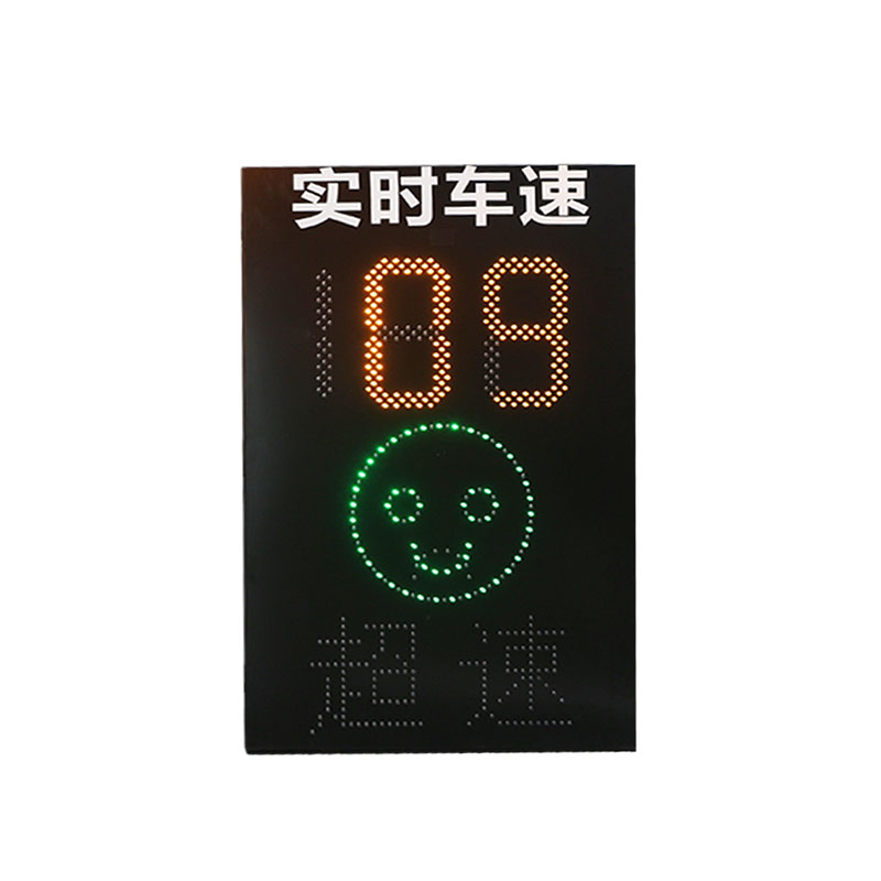 9.此款雷达检测到未超速车辆时,最上方数字会显示车辆的实际速度并且配有绿色的笑脸图案;当检测到超速车辆时,最上方数字显示车辆的实际速度,下方配有红色的哭脸和黄色的超速提示。
