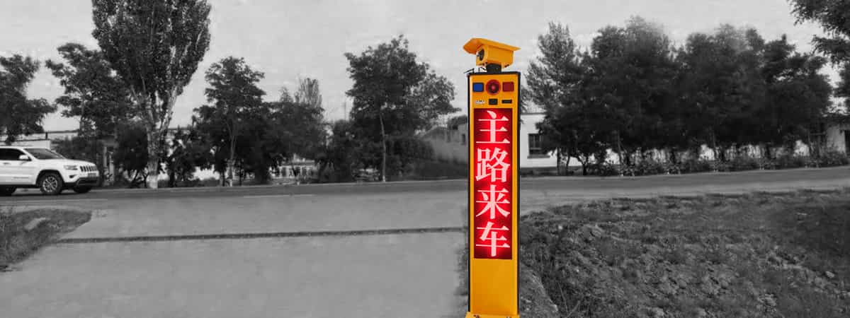 -当检测到主路有车辆通过时,设备随即通过警示灯闪烁、文字、语音播报的形式,预警支路行人和车辆,注意安全通行。