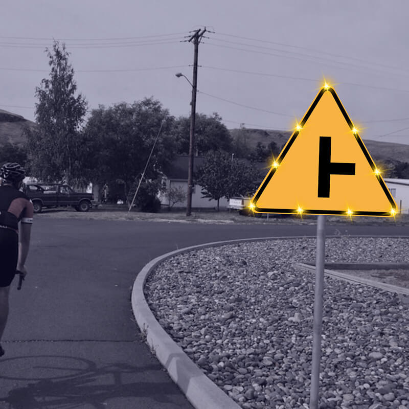 点发光交通标志采用日间可见式LED灯源和反光膜材料制作版面,实现交通标志自发光效果,克服传统反光膜交通标志在昏暗环境下视认效果不佳的严重缺陷。