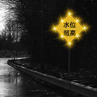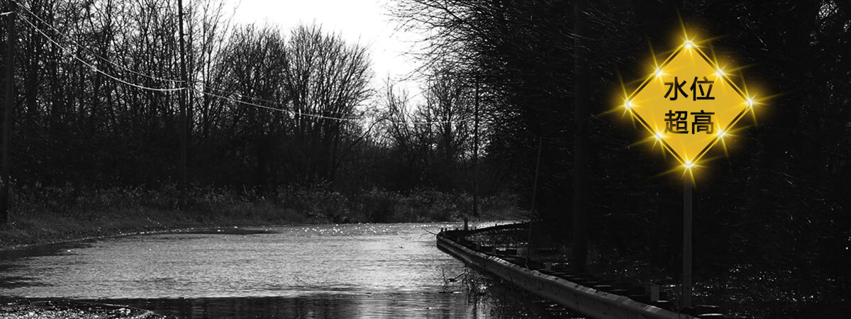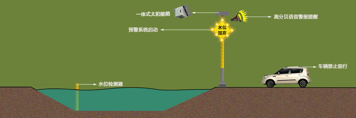 -一旦预警系统启动,发光标志牌闪烁,预警司机前方水位超高,请勿继续前行