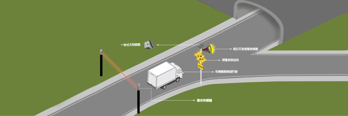 很多公路隧道、公路桥梁都有高度限制,但是由于传统的限高标志的警示效果不明显、司机的注意力不集中或对限高路段 不熟悉等等原因,事故时有发生。这些事故常常会导致交通拥堵、公共财产损失和人员伤亡。
